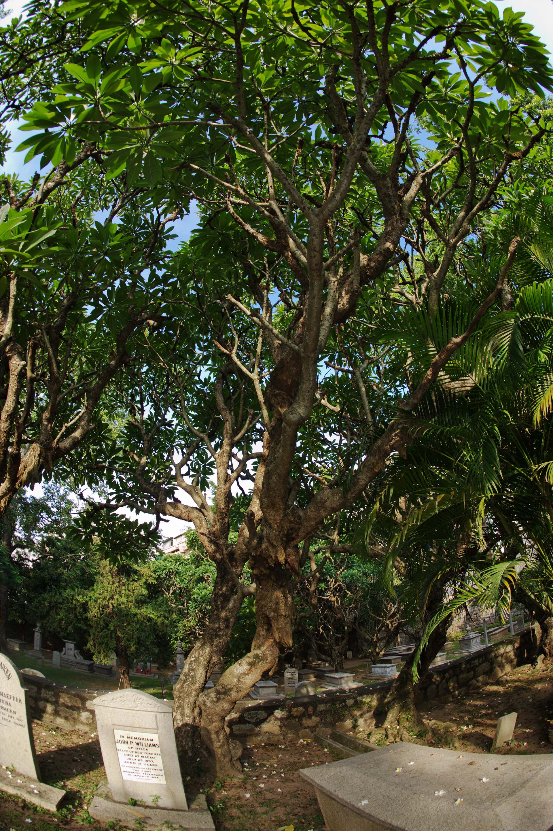 The frangipani trees may have been added to the cemetery more than 160 years ago, intended to adorn the burial grounds. Today, their vigour serves as a reminder that life and death are intertwined, two sides of the same coin.