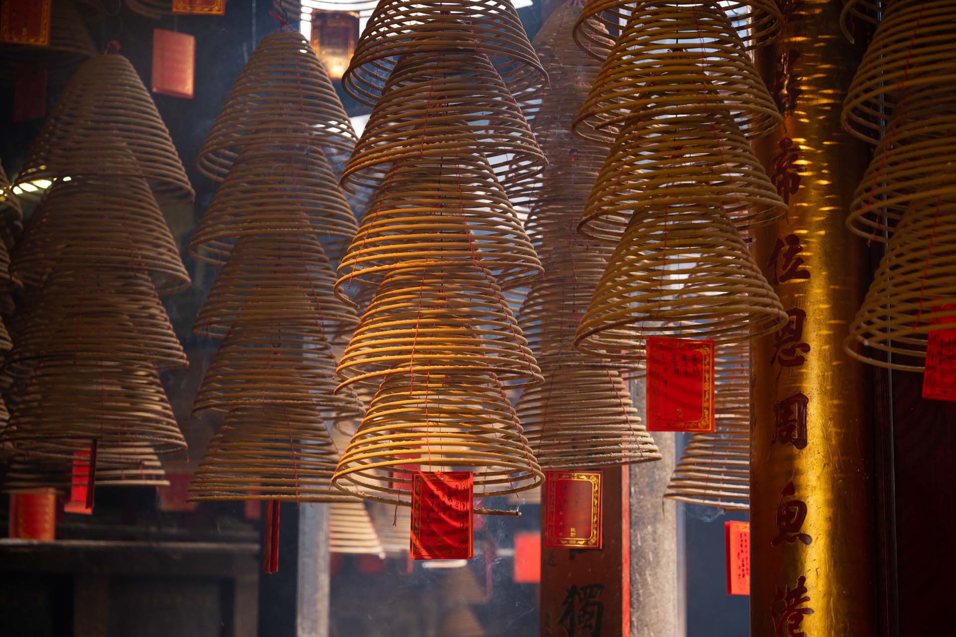 The temple is organised around a central chamber dedicated to Pak Tai, flanked by side halls housing other deities: Va Kuong, the god of fire; Empress Kam Fa, protector of children; Kuan Tai, the deified military commander celebrated for his righteousness; Master Lu Ban, patron of craftsmen; and the God of Wealth.